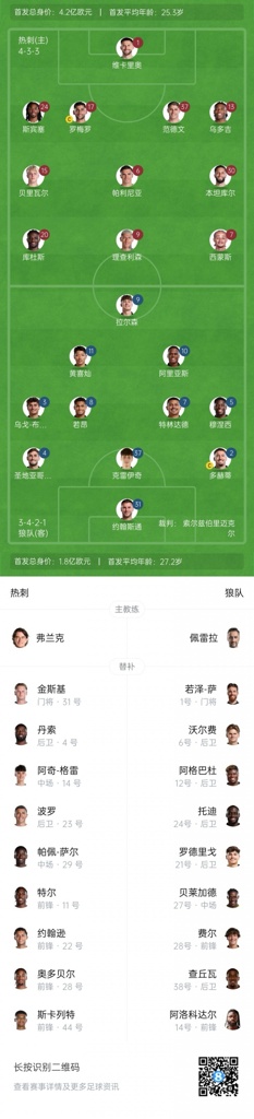 9月28日讯 英超第6轮,热刺主场迎战狼队,赛前首发公布。